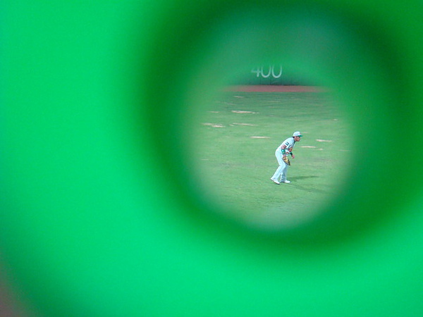 今天傍晚的天母球場真是適合棒球的日子,藍天、白雲、青山、微風,不會被柵欄擋住